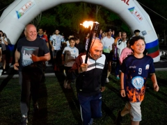 El primer grupo partió con la ‘Llama del Pollo al Disco’, encendida en el Pórtico recibiendo el fuego desde un disco de cocina. En la continuidad del recorrido, bajo el concepto inclusivo de ‘Sumate’, se incorporaron los distintos referentes y grupos de runner locales, para cubrir un total de 2,5 kilómetros que hay de distancia entre cada lugar.