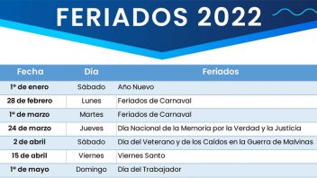 Así se desprende del calendario de feriados que definió el Gobierno para 2022 que prevé para el año 12 feriados inamovibles, dos trasladables y tres con fines turísticos, lo que contabiliza 17 días festivos.