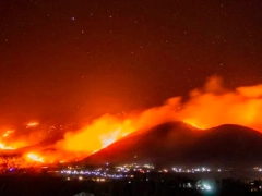 En tanto, en la zona de pastizales del Cerro de la Cruz, en La Rioja capital, el fuego es favorecido gracias a la presencia del viento Zonda. La administración libertaria mandó un avión hidrante.