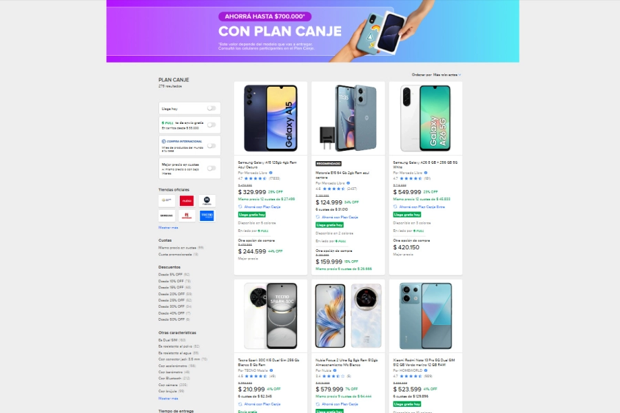 Según la información difundida, el programa contempla montos de hasta $700.000 en algunos modelos de celulares. Sin embargo, la campaña actual incluye un beneficio específico para quienes adquieran un equipo Samsung. “Desde el 30 de septiembre, Mercado Libre suma beneficios adicionales en alianza con Samsung. Quienes compren un celular nuevo de la marca podrán acceder a un descuento de hasta $550.000, acumulable al dinero a acreditar según el valor del usado a entregar”, detalla el comunicado.