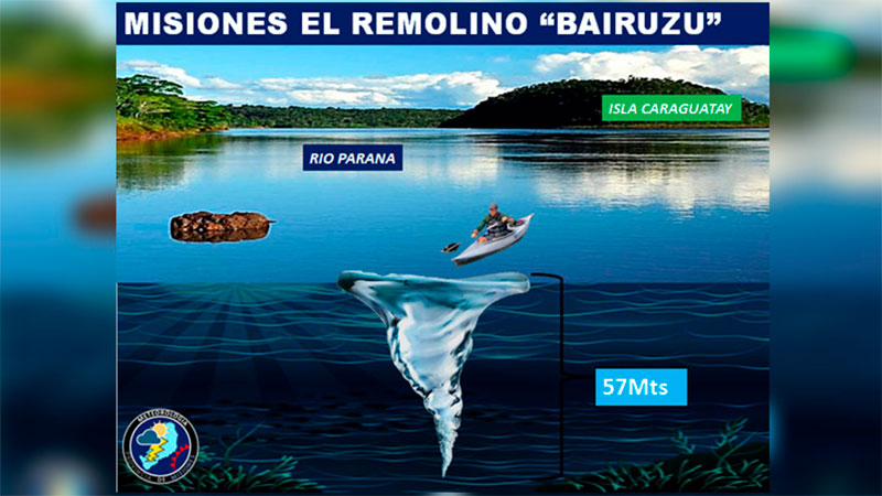 Creer o reventar. La leyenda cuenta que el imponente Bairuzú que se formó en el río Paraná, a la altura de Montecarlo (Misiones), se llevó embarcaciones e incluso se cobró la vida de pescadores. Actualmente, con la bajante del río, los lugareños pueden observar con mayor precisión el fenómeno que se crea en una combinación de tres remolinos.