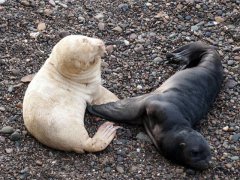 Un ejemplar de lobo marino albino, casi totalmente blanco, nació en la reserva faunística provincial, a 65 kilómetros de Viedma, sobre la costa atlántica, donde habitan unos 6.000 ejemplares de ese mamífero.