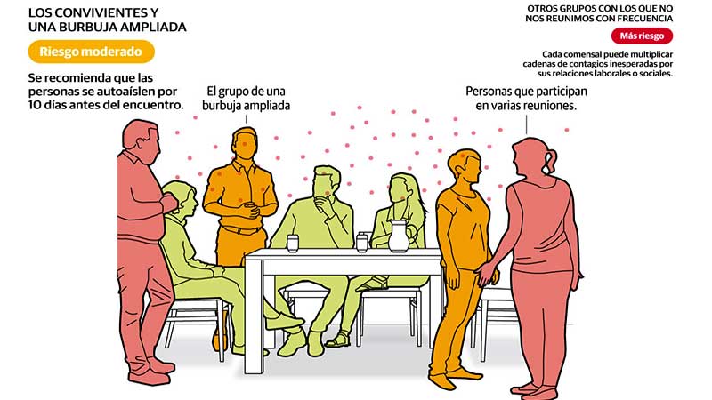 "Desde la infección, la probabilidad de contagiar aumenta exponencialmente hasta los dos o tres días. Luego va disminuyendo, y entre los ocho y 11 días de la infección la persona ya deja de ser contagiosa", detalla. A pesar de que pasó ese tiempo, el investigador cree que sigue siendo una buena medida no reunirse los días previos a la celebración.