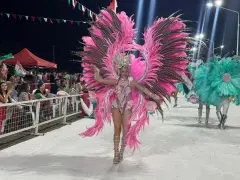 En medio de la presentación y el baile, una joven destacó: “Amamos el tricolor”, en referencia a su comparsa. Evangelina, una mujer que llevó un gran espaldar rosado, sostuvo que es una noche “inolvidable” y que es algo “único”.
