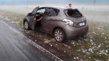 En una ráfaga de pocos minutos, las piedras azotaron con fuerza a los automovilistas que sorprendió en medio de la ruta y fue poco lo que pudieron hacer para evitar las consecuencias.