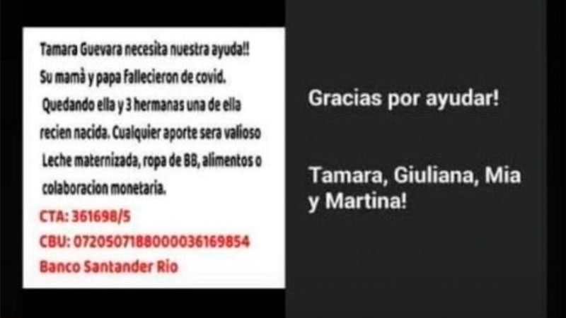 Para colaborar con la familia Guevara, dejaron este CBU a disposición: 0720507188000036169854.