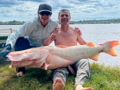 La pelea se extendió por más de 40 minutos y la lancha debió acompañar al pez unos cuatro kilómetros río abajo. “Cuando asomó la cola y vimos que era todo blanco, no lo podíamos creer. Era enorme, ancho, pesado. Lo estimamos en unos 50 kilos”, relataron.