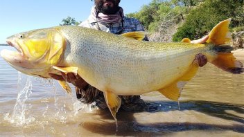 Fueron varios los piques obtenidos hasta que uno marcó la diferencia: 103 centímetros de largo por 72 de circunferencia. “Esta vez, Esquina me dio el dorado más grande de mi vida”, dijo el pescador que lo capturó.