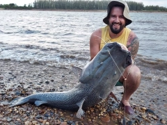 Con gran detalle, relató cómo fue el momento en el que se encontró con este enorme ejemplar. "Entramos antes del camping municipal, en una bajada que hay y llevé la caña, saqué una boguita viva y me metí al agua, tiré lejos y nos sentamos a tomar mates", recordó el pescador, quien pensaba que la tarde transcurriría con total normalidad.