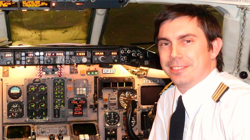 Explicó que "tenía 8 años y nos dijo que quería ser piloto. Costó mucho, para serlo tenía que estudiar mucho y rendir, pero aprobó todo y fue piloto de Fuerza Aérea. Después estuvo en España seis meses, voló otros aviones. Volvió a Argentina, vivió en Reconquista muchos años y lo trasladaron a Paraná. Después llegó a Capital y le salió la oportunidad de irse a Aerolíneas Argentinas. Está muy contento ahí".