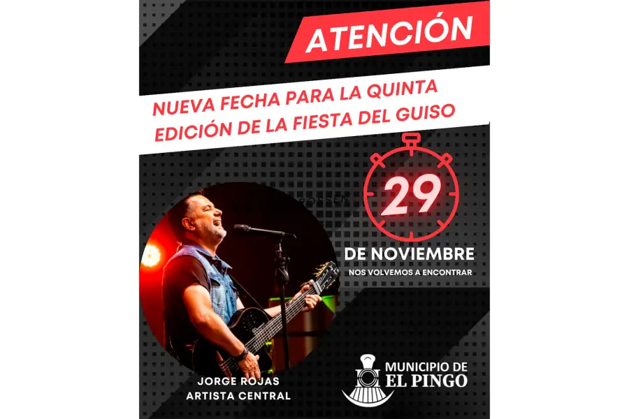 Por las inclemencias del tiempo, se reprogramó para el 29 de noviembre la quinta Fiesta Provincial del Guiso de El Pingo. El evento se iba a desarrollar este sábado en el Predio Municipal. Como todos los años, la celebración combina gastronomía, música y tradición popular.