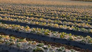 La devastación provocada por las heladas se hace visible en los campos de frutillas. Los efectos son claros: las flores, una vez afectadas, pasan de un tono marrón a negro, perdiéndose así la posibilidad de obtener las jugosas frutas que tanto anhelaban los agricultores.