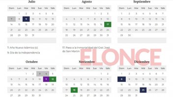 Además, por el calendario oficial, el Gobierno no determinó que el lunes previo, 8 de julio, sea feriado puente, con lo cual en julio no habrá fin de semana largo. Cabe acotar que en muchas provincias como Entre Ríos los estudiantes estarán en pleno receso escolar de invierno.
