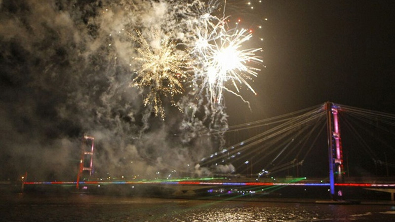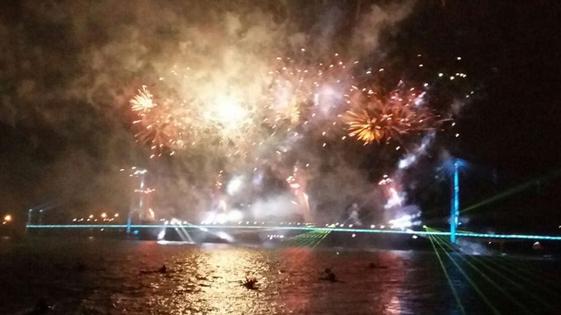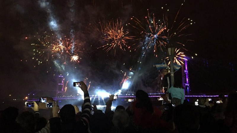 Pese al frío y llovizna, se estima que hubo 10.000 personas en las costaneras del puente. Además como parte del acto, se realizaron shows musicales y demostraciones náuticas.