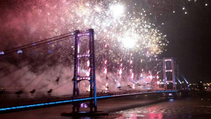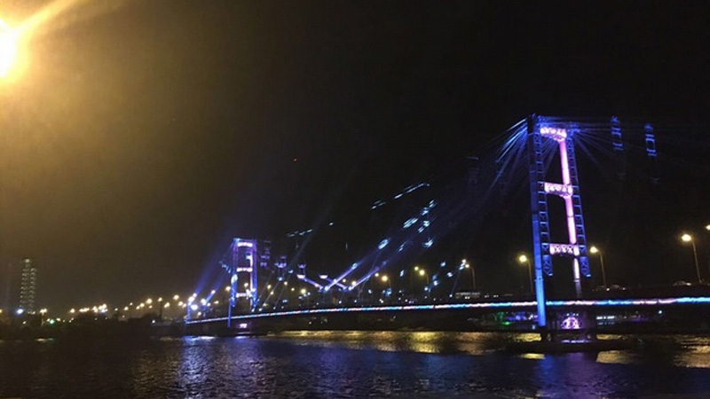 El jueves 25, cuando ya había caído la tarde, como parte de los festejos patrios y con el acompañamiento de un importante marco de público, quedó inaugurada oficialmente la nueva iluminación led del Puente Colgante. La cuenta regresiva dio inicio a las 19 en punto, el horario previsto, cuando empezó a iluminarse de a poco la imponente estructura, hasta llegar a cubrirse con los colores azul, blanco y rojo de la bandera de la provincia de Santa Fe. El cielo estalló en fuegos de artificio y pudo apreciarse un llamativo show de luces láser que surcaba el aire con tonos verdes y azules, mientras sonaban los inconfundibles y universales acordes del Himno a la Alegría de Ludwig van Bethoveen. A las 19.04 el espectáculo tuvo su cenit y concluyó a las 19.05.
