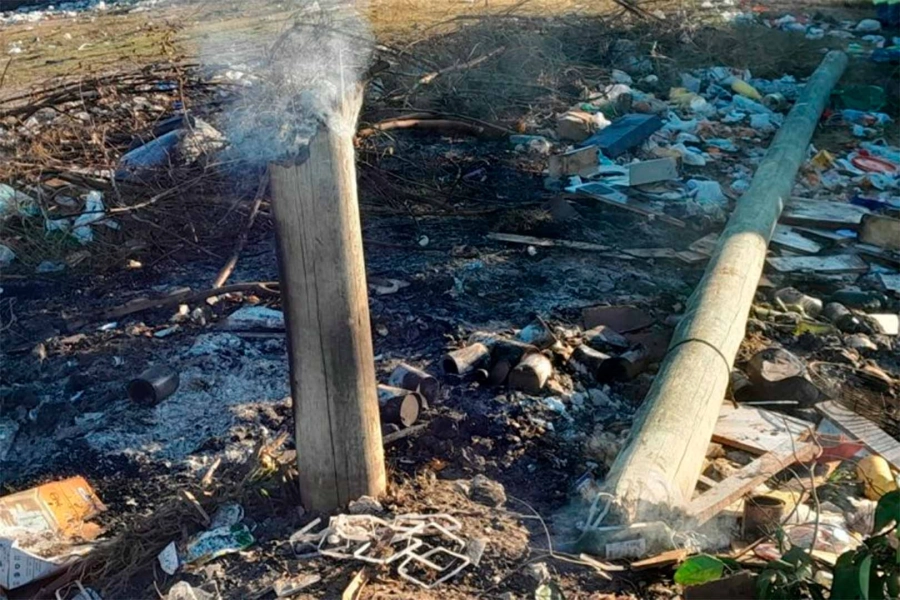 Quemaban basura en un descampado y cayó un poste del tendido eléctrico