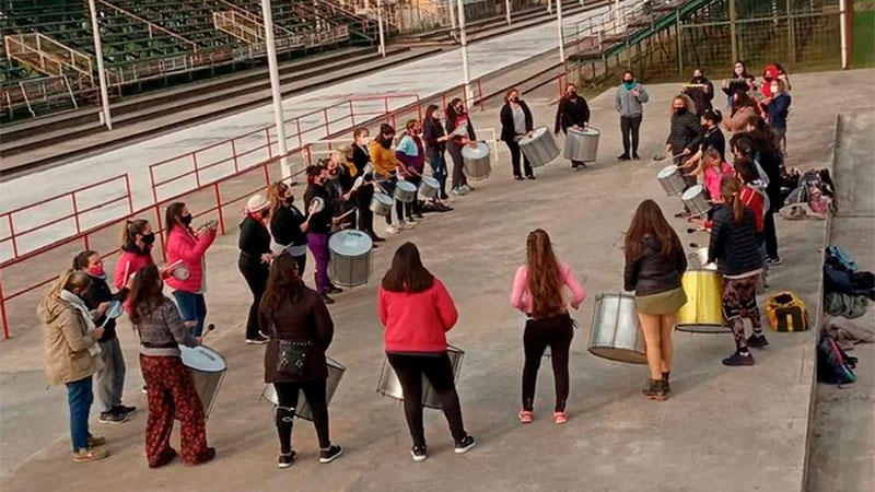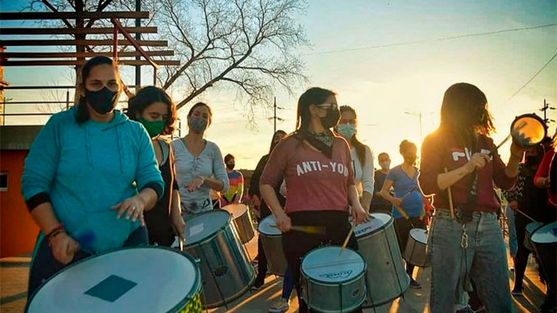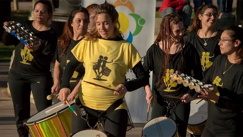 “Nuestras profesiones son bien diferentes. Acá hay estudiantes, otras somos docentes, otras abogadas, psicólogas, hay una nutricionista y empleadas de comercio; y si bien los roles en el hogar están bastante compartidos de todos modos sigue complicándose organizarnos con la casa, la familia, los hijos y el trabajo... Hacemos muchas cosas para estar acá y otras las dejamos un poco de lado, por eso valoramos los espacios para ensayar porque es difícil llegar”, cuenta la integrante de la batucada.