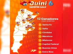 Durante el sorteo de Quini 6 de este domingo 15 de septiembre, 12 apostadores de distintas provincias argentinas se repartieron la de suma de más de $185.200.000 en la modalidad Siempre Sale. Salieron sorteados los números 04 - 26 - 37 - 39 - 40 – 45.