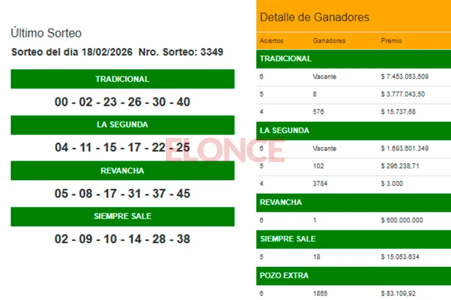 En el Pozo Extra, en tanto, hubo 1865 ganadores y cada uno percibirá $83.109,92. Elonce.com