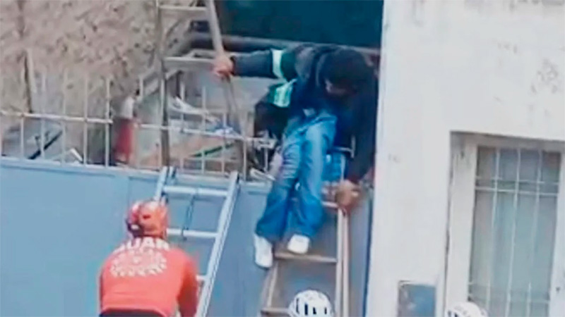 Un intento de robo terminó de una forma impensada en la ciudad de Córdoba, con un ladrón colgado de una reja y varios bomberos asistiéndolo para sacarlo de la apremiante situación.