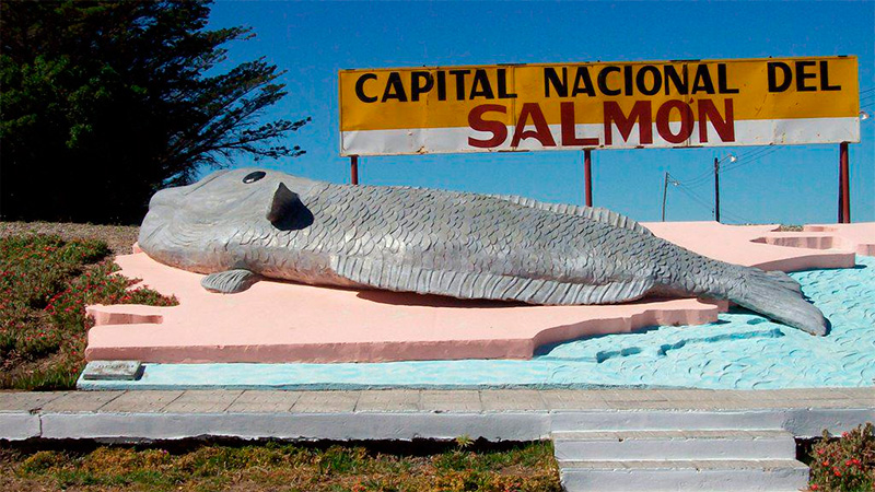 El 1er lugar lo tiene "El Salmón de Camarones" (una designación surrealista de por sí) ubicado en Camarones a 250 kilómetros tanto de Trelew como de Comodoro Rivadavia, pequeño puerto perdido en la costa de la Patagonia. Poco más de mil personas viven allí. Los pocos turistas que llegan hasta esta localidad por supuesto no se pierden la ocasión de tomarse una foto a su lado. Su cara de pez de historieta y la perspectiva lo convirtieron en un monumento de culto.