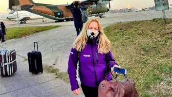 A minutos de tomarse el vuelo, desde el aeropuerto de la base aérea de El Palomar, la paramédica contó sus sensaciones a <i>R2820.</i> Emocionada y ansiosa por emprender la misión sanitaria, relató: "Viajamos con un equipo interdisciplinario de 30 a 35 profesionales para hacer los refuerzos sanitarios en los que se necesite. Vamos a cubrir al personal que se enfermó y a los que están cansados, algunos van a hacer trabajo del plan DetectAR, y otros como yo seremos parte de los dispositivos prehospitalarios de emergencias".