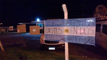 Tanto rezo compartido pareció encontrar señales para creer: avanzada la noche, apenas una hora después de la ceremonia religiosa, se supo de las llamadas satelitales que habrían partido desde el submarino. Y se iluminó la esperanza. "Fuerza Argentina. Confiamos en Dios. Los esperamos", se leía en una bandera atada antes de medianoche sobre el frente de la unidad militar.