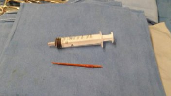 "Lo extraordinario también es que está entero el escarbadiente, estaban los seis centímetros; parece un caso del Doctor House", comentó en referencia a la serie de televisión estadounidense.
