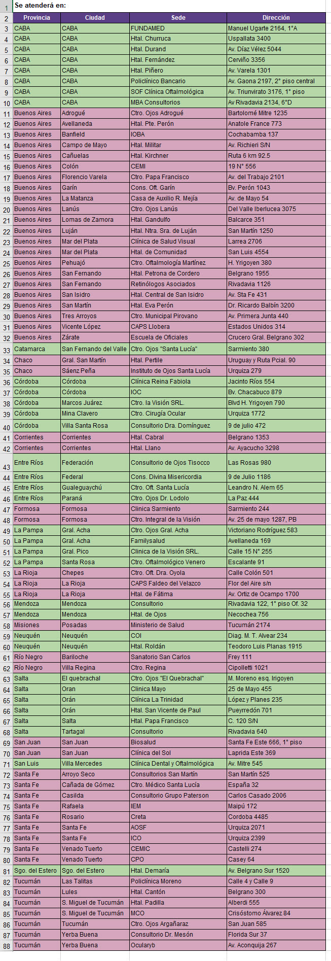 - Paraná: Centro de Ojos Dr. Lodolo; La Paz 444; de 9 a 17. Teléfono: 3434510687