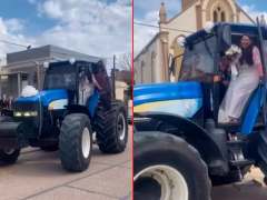 Una boda con impronta local y espíritu rural conmovió a toda la comunidad de Seguí, en Entre Ríos. La pareja de recién casados en tractor no solo selló su amor con un "sí quiero", sino que decidió celebrar su unión con una salida de iglesia completamente atípica… y bien nuestra: abordaron un tractor, decorado especialmente para la ocasión, y recorrieron las calles del pueblo entre bocinazos, aplausos y emoción.
