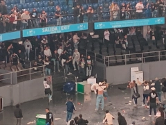 La pelea estalló antes del inicio del show. Según registraron videos que se viralizaron en redes sociales, los enfrentamientos comenzaron con discusiones entre barras y escalaron rápidamente a golpes y agresiones con objetos contundentes.