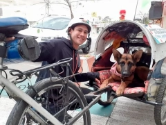 Walter Rivero, un cicloviajero de 34 años oriundo de Rosario, arribó en los últimos días a la ciudad de Crespo como parte de una travesía en bicicleta rumbo al norte argentino. Lo acompaña su fiel compañera, Gaia, una perrita rescatada que viaja cómodamente en un carrito adaptado para este tipo de travesías.