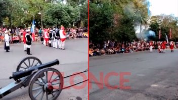 Muchas familias se acercaron al punto de encuentro para presenciar el evento con personas que se trajearon con los típicos uniformes de la batalla y lanzaron algunos disparos con sus armas al cielo.
