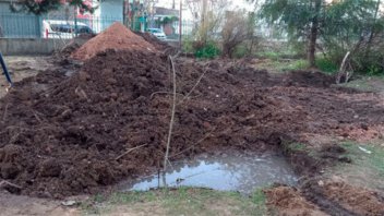 Se realizó la extracción del agua que se drenó con bombas a la calle y se trabajó con maquinaria para tapar con varias cargas de camiones con tierra, hasta dejar compactada la zona.
