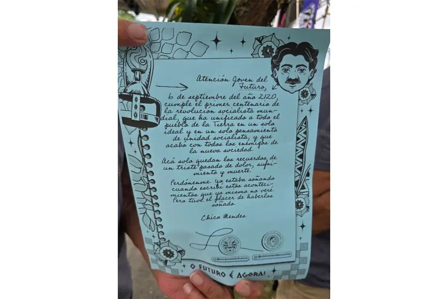 Martita Arriola, expresó a Elonce que “estamos en un lugar emblemático, el espacio Chico Mendes, un mártir, un luchador por la defensa de la casa común. Estamos alojados aquí cerquita. Somos parte del movimiento, de la campaña Remar Contracorriente por el agua, la vida y la soberanía. Hemos venido con una misión, que se centra en visibilizar que estamos frente a un colapso hídrico sin proporciones, se ven ya los efectos de esta crisis sistémica, civilizatoria, que impacta en nuestro río”.