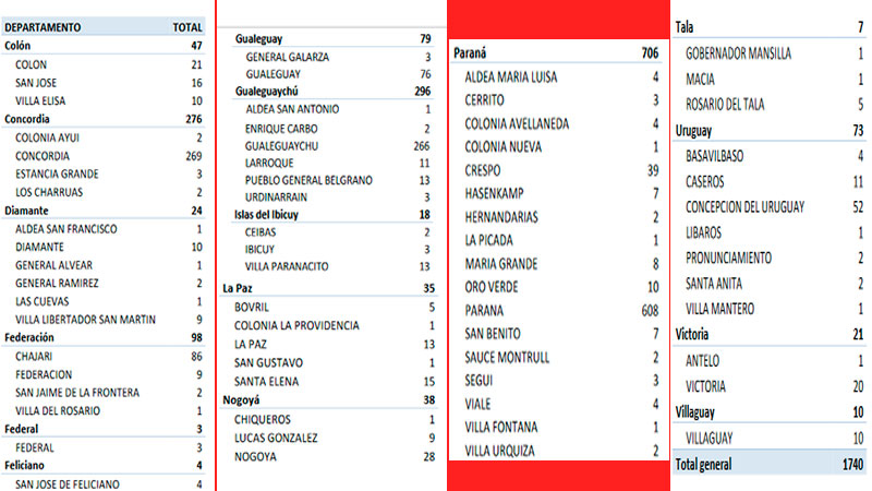El Ministerio de Salud, especificó las localidades a las que pertenecen los 1740 pacientes diagnosticados durante la última semana como positivos de coronavirus en los 17 departamentos y se conocieron los lugares donde se registraron los casos. La distribución de los mismos: