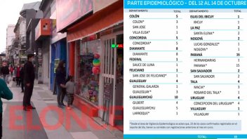 Cabe destacar que, 23 de los casos confirmados registrados en el reporte del día, tienen su correlato con registraciones anteriores al mes en curso. Dichos casos corresponden a las localidades de: Colón (2); Villa Elisa (1); Concordia (4); San José de Feliciano (1); Gualeguay (1); Larroque (1); Santa Elena (1); Lucas González (1); Nogoyá (1);