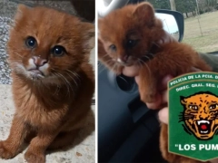 Rescataron un cachorro de yaguarundí que estaba en la puerta de una casa