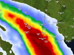 En relación al frente frío avanzando por el centro del país, este comenzará a organizar e intensificar tormentas desde la madrugada sobre el este de La Pampa y el sudoeste de Buenos Aires, región y momento del día cuando inicia el alerta oficial del SMN por tormentas fuertes, abarcando en particular a la Ciudad de Bahía Blanca en donde no se descartan fenómenos localmente fuertes en las primeras horas del domingo.