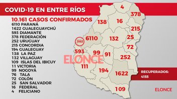 De ese modo, <b>en la provincia son 10.161 los casos confirmados</b>; de los cuales <b>4155 son pacientes recuperados</b> y lamentablemente, fallecieron 188 personas con Covid-19 en territorio entrerriano.