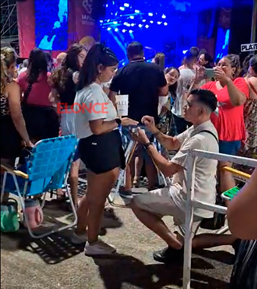 Durante la presentación del show de Abel Pintos en la segunda noche de la Fiesta Nacional de la Playa, Elonce fue testigo de una romántica propuesta de casamiento en Concepción del Uruguay.