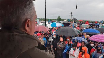 "Esto no es un tema de una familia, es un delito. Vamos a estar en la puerta del campo hasta que la Justicia los saque", dijo el Luis Miguel Etchevehere. La manifestación se dio en medio de una fuerte presencia policial en el lugar.