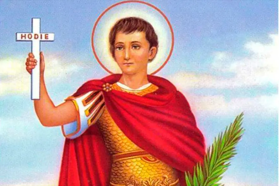 Los creyentes lo representan como un legionario romano con túnica roja, sosteniendo en una mano una palma —símbolo de victoria y vida eterna— y en la otra una cruz con la inscripción “hodie”. Esta imagen sintetizó el mensaje central de su historia: actuar sin demoras ante lo que se considera correcto.