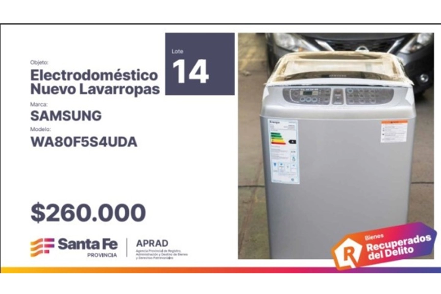 El gobierno de Santa Fe anunció que llevará a cabo la mayor subasta de bienes incautados en causas vinculadas al delito. Serán ofrecidos 159 lotes que incluyen vehículos, inmuebles, joyas, celulares, materiales de construcción y, por primera vez, electrodomésticos. El valor inicial total asciende a $480 millones.