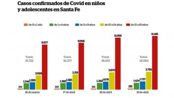 Los chicos pueden contagiarse de Covid, de eso no hay dudas, y aunque suelen transitar la enfermedad sin complicaciones pueden transmitirlo a personas de mayor riesgo, ya sean adultos mayores o pares con enfermedades previas. En Santa Fe, según los registros del Ministerio de Salud provincial, en los últimos cinco días se sumaron casi 600 contagiados más en la franja etaria que va de los recién nacidos a los 19 años. El mayor crecimiento se dio entre los adolescentes.