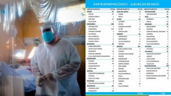 La provincia sumó 75.536 los casos de coronavirus este jueves al reportarse 1.046 positivos en los 17 departamentos. Paraná y Concordia superaron los 200 contagios. El detalle del informe epidemiológico.
