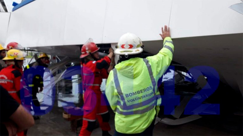 <b>Así trabajaban bomberos de Concepción del Uruguay tras la caída del techo de la estación de servicios:</b>