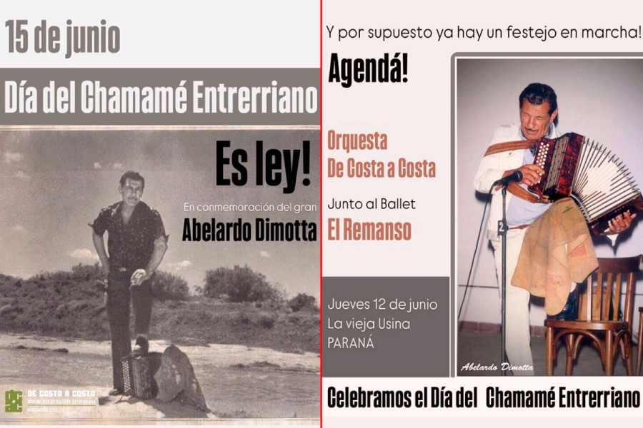 Se instituyó el 15 de junio como el Día Provincial del Chamamé Entrerriano en conmemoración al acordeonista Abelardo Dimotta. La aprobación se dio en la mañana del 22 de mayo en la Cámara de Diputados tras haber tenido media sanción la semana anterior en Senadores, con el proyecto presentado por el legislador Martín Oliva.