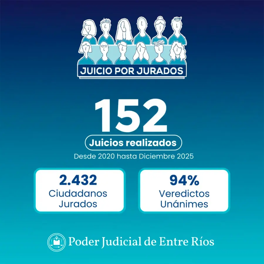 El sistema de juicios por jurados reafirmó durante el último año su consolidación como una herramienta central del proceso penal en la provincia. Desde su implementación en 2020 y hasta diciembre de 2025, se llevaron adelante 152 debates bajo esta modalidad.