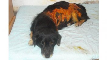 Un perro de la calle fue quemado intencionalmente con agua hirviendo hace unos días atrás en Villaguay. El animal fue socorrido por una protectora y dado en guarda transitoria a la familia de un vecino de esa ciudad que ya tiene otros seis animales recuperados.